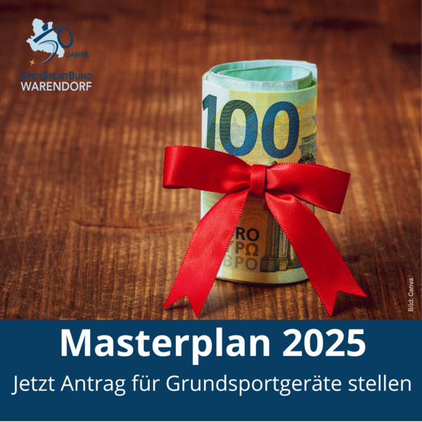 Ab sofort sind die Anträge für den Masterplan 2025 freigeschaltet. Der Masterplan fördert die zur Anschaffung von Grundsportgeräten bis zu 500 €.