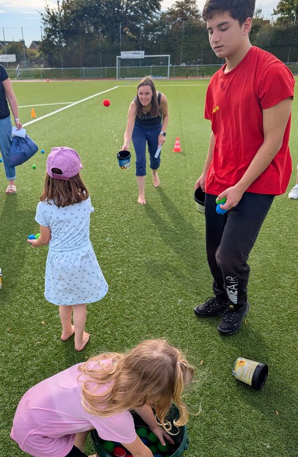 Ein besonderes Highlight war die Station zum Motto des Weltkindertags 2025: „Kinderrechte – Bausteine für Demokratie“. Hier konnten die Kinder bunte Bausteine individuell gestalten, mit Zeichnungen, Symbolen oder kleinen Botschaften. Anschließend wurden die gestalteten Bausteine zu einem Regenbogen zusammengesetzt. "Diese Station steht als starkes Zeichen für Vielfalt, Zusammenhalt und die Bedeutung von Kinderrechten in einer demokratischen Gesellschaft" resümiert Tabea Kinder vom Vorstand der Sportjugend des KSB Warendorf.